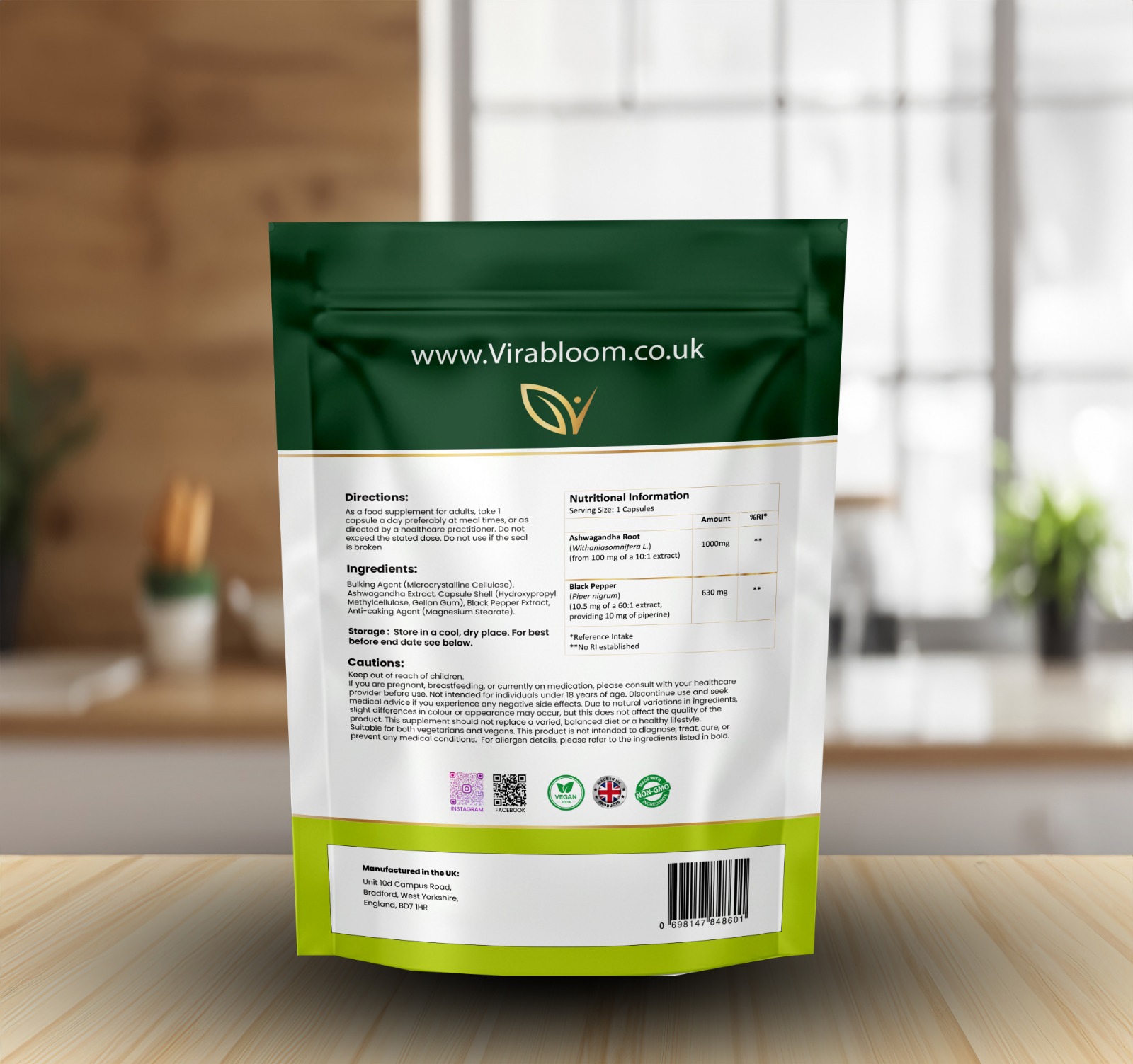 Ashwagandha & Black Pepper is a premium ViraBloom herbal supplement designed to support calm, balance, and everyday performance. Using carefully selected Ashwagandha root combined with Black Pepper extract for enhanced absorption, this formula helps your body adapt to stress while supporting energy, focus, and overall wellbeing.